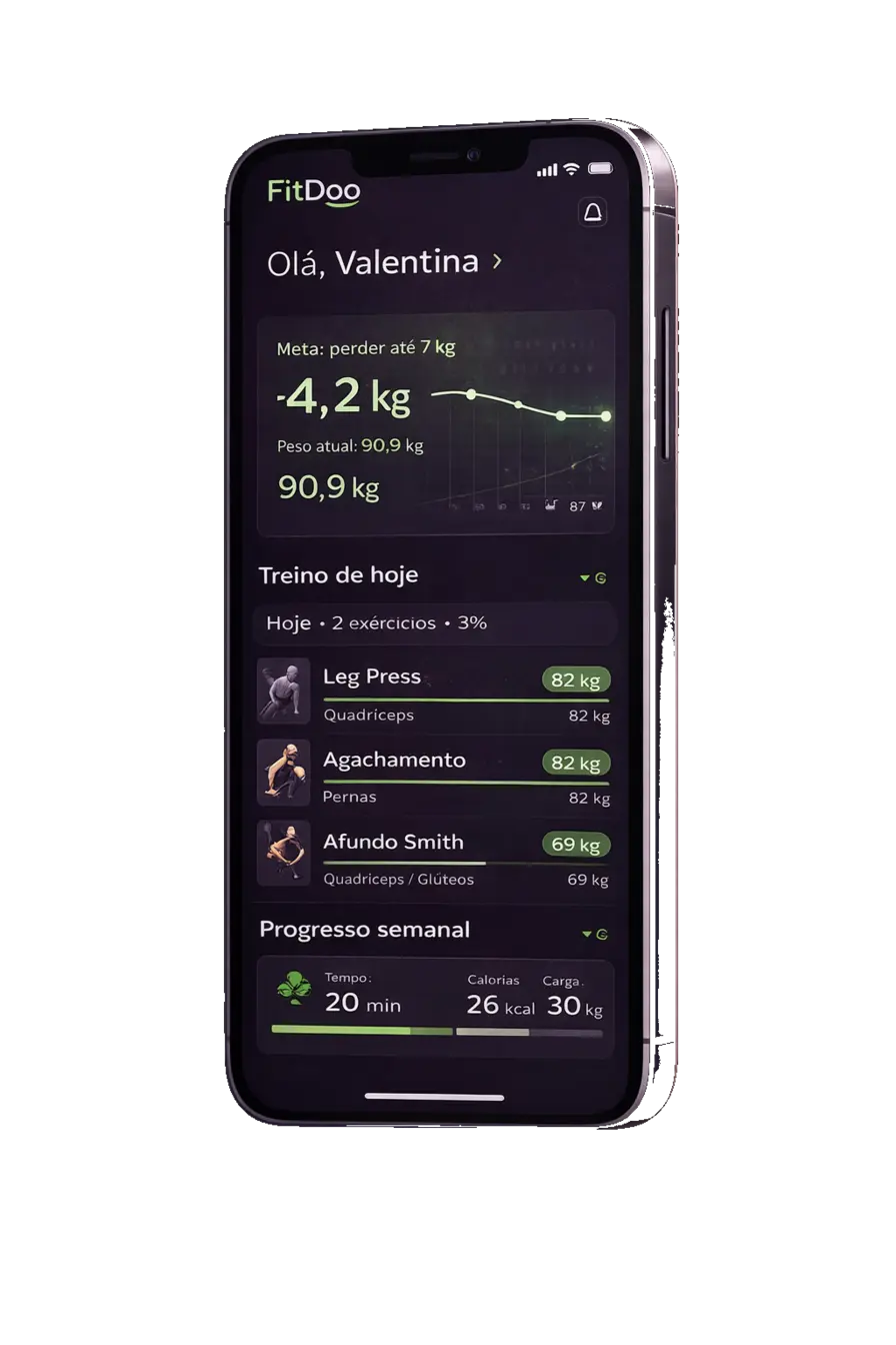 "Quando comecei a acompanhar minha evolucao no FitDoo, tudo ficou mais real. Ver as mudancas me motivou muito mais do que eu imaginava."Resultados que fazem sentido