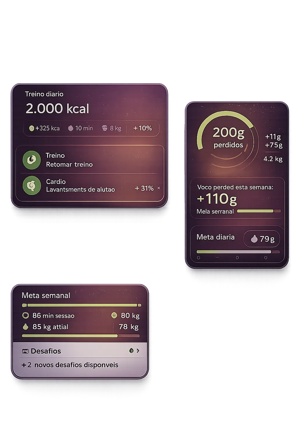 Acompanhe sua evolução com dados claros, mantenha o foco com desafios e torne sua rotina mais divertida competindo com amigos — tudo com o suporte de profissionais ao seu lado.